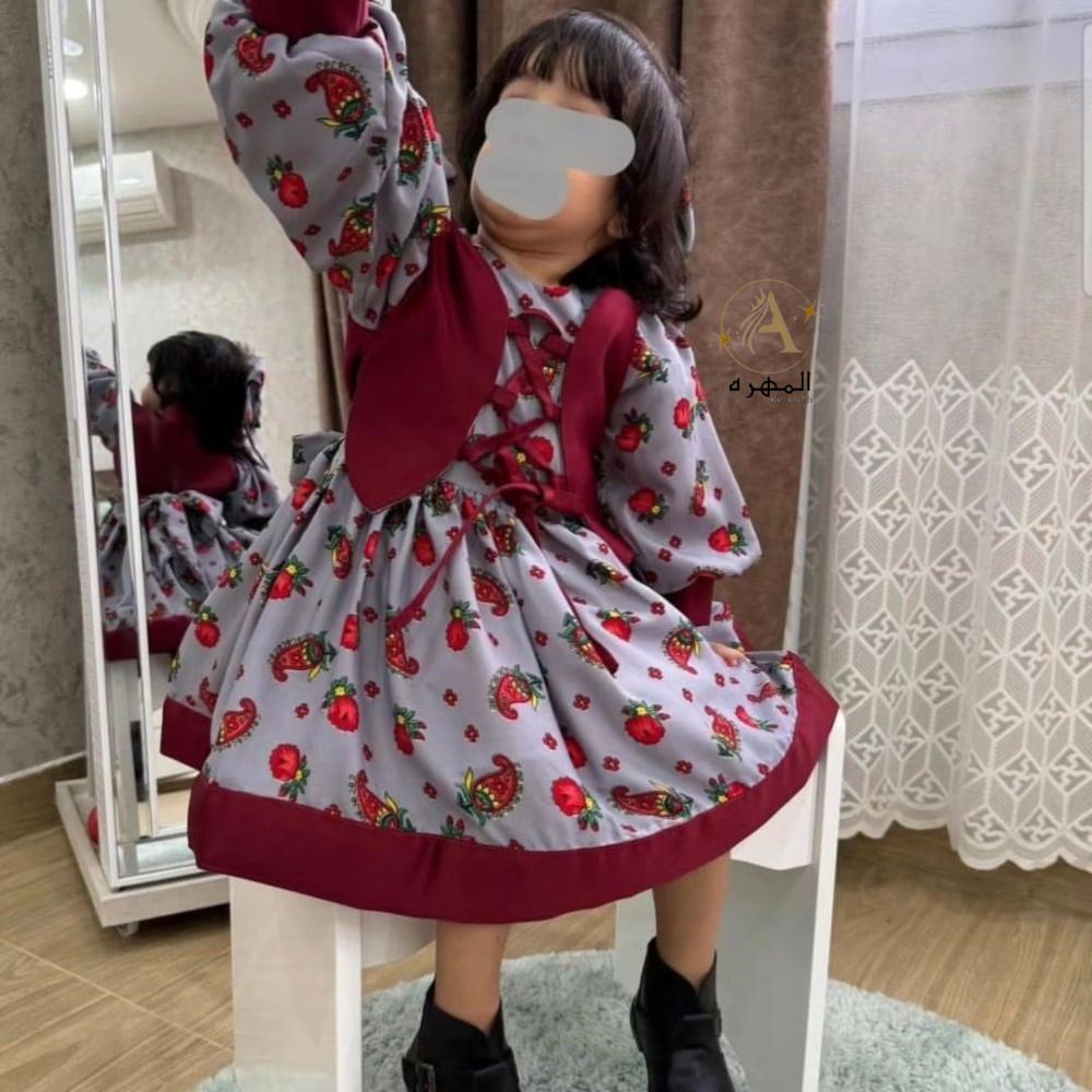 الفستان عباره عن موديل بشكل حضري. بقماش الشالكي الشعبي التراثي